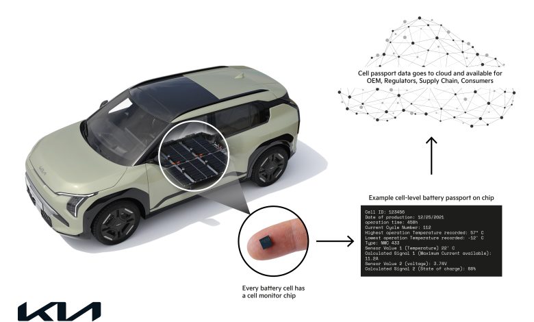 Kia Europe je začela prvo javno testiranje in izdelavo t.i. baterijskega potnega lista na celični ravni, kar predstavlja pomemben korak k večji preglednosti stanja baterij električnih vozil. Sistem omogoča sprotno spremljanje stanja baterij, diagnostiko odstopanj in potencialnih popravil v realnem času ter sledljivost skozi celoten življenjski cikel baterije. Voznikom električnih vozil to zagotavlja daljšo življenjsko dobo baterije, nižje stroške vzdrževanja in večje zaupanje pri nakupu ali prodaji rabljenih vozil.