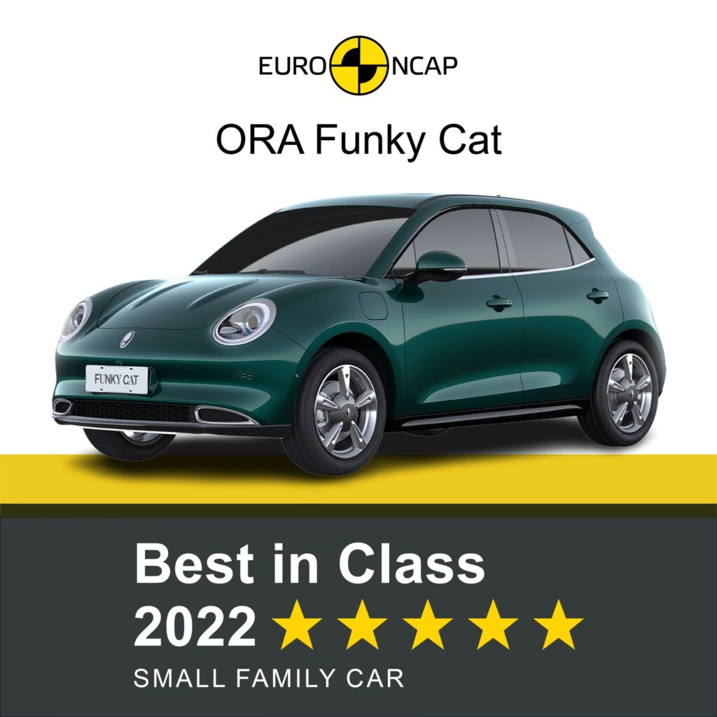 V segmentu majhnih družinskih vozil je najvišje mesto dosegla električna GWM ORA Funky Cat, ki žanje tudi prve prodajne uspehe na evropskih tleh. Že v najbolj skromni različici je opremljena s 360-stopinjsko parkirno kamero, adaptivni tempomat z ohranjevalnikom pasu, sistemom za zaznavanje v mrtvem kotu, sistem za prepoznavo prometnih znakov, sistem za zaviranje v sili in opozorilnik za promet med vzvratno vožnjo. Se še čudite rezultatom testiranj in prodajnim številkam?