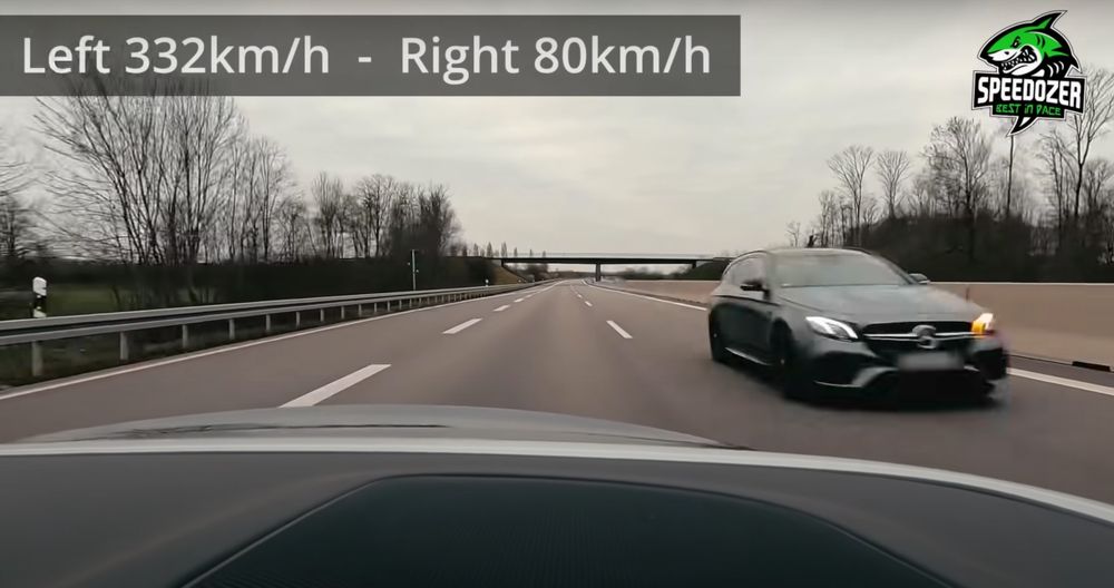 Obstajajo celo Youtube kanali posvečeni hitremu dirjanju z novimi avtomobili, vendar je le malo posnetkov prehitevanja pri izredno visoki hitrosti. Dotičen videoposnetek jih ima kar nekaj, posnetih iz Mercedesa razred E kabriolet (z zloženo streho, kakopak) pri hitrostih 70, 80 in 100 km/h. Mimo je švigal Mercedes-AMG E63 S karavan, predelan s strani podjetja GAD-Motors, ki je vozil precej hitreje. Vsaka vožnja je krepko presegala mejo 300 km/h, najvišja dosežena hitrost je bila kar 332 km/h.