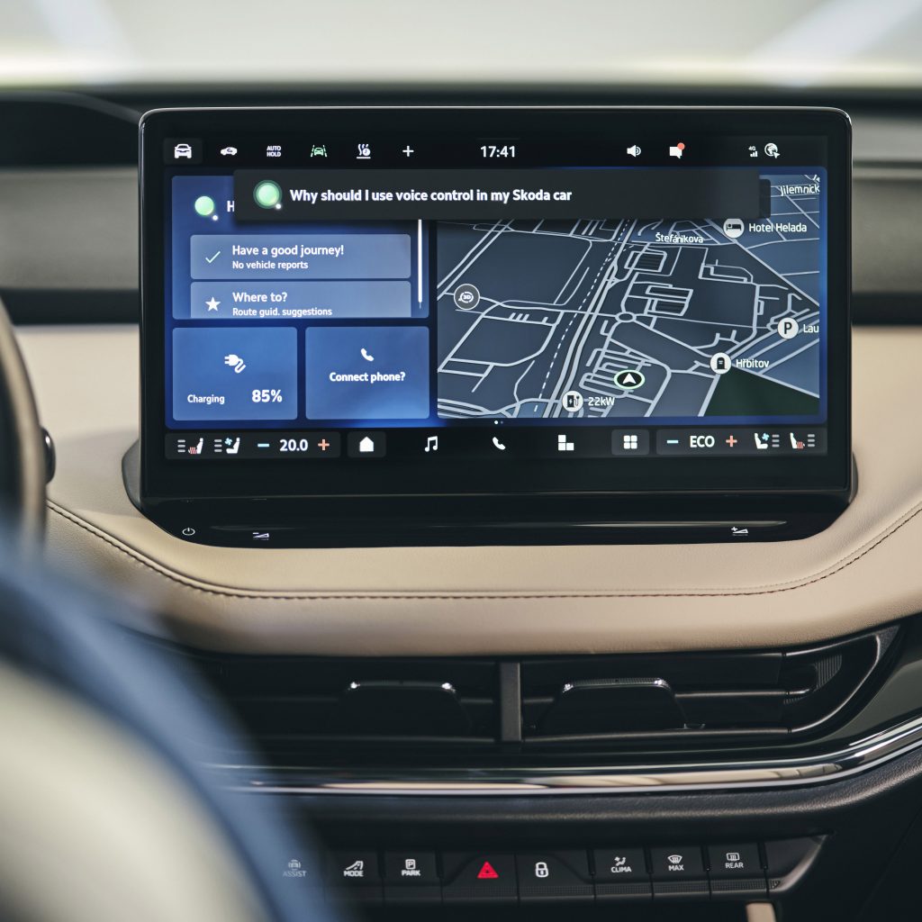 Funkcionalnost Škodinega glasovnega pomočnika Laura se je z integracijo tehnologije Chat Pro tehnološkega partnerja Cerence znatno razširila. Funkcija Chat Pro je poleg že prej dostopnih virov informacij zdaj neposredno povezana z naprednim orodjem umetne inteligence ChatGPT, ki odgovarja na vprašanja, ki presegajo obseg Laurinega prvotnega znanja. Funkcija je zdaj na voljo v modelih družine Škoda Enyaq z novo različico programske opreme 4.0, ki je bila izdana za modelno leto 2024, v novi generaciji vozil Škoda Superb in Kodiaq ter v posodobljeni različici vozila Škoda Octavia. Podatki o uporabniku in vozilu so vedno varni.
