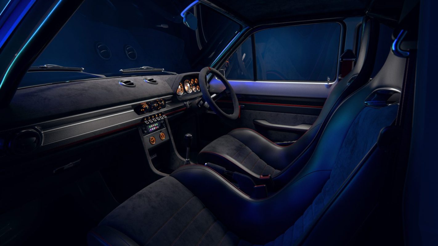 Zunanji detajli vključujejo pravokotne žaromete LED, hladilne reže, ki jih je navdihnil Alan Mann, in visokosijajno ali matirano karbonsko obdelavo. Petnajstpalčna štirikraka platišča s sodobnimi pnevmatikami v avtomobilu ohranjajo duh prvotne zasnove. Zavorni sistem vključuje prezračevane 260 mm diske s štiribatmimi čeljustimi spredaj, ki zagotavljajo natančno zavorno moč, ki ustreza njegovim zmogljivostim pri visokih hitrostih. V notranjosti Mk1 RS se prepletata retro šarm s sodobno opremo. Armaturna plošča iz ogljikovih vlaken, oblazinjenje v alkantari in usnju ter analogni merilniki ohranjajo klasičen pridih, medtem ko ogrevano steklo, klimatska naprava in opcijski dirkaški elementi, kot sta varnostna kletka in prostor za čelado, dodajajo športno funkcionalnost.