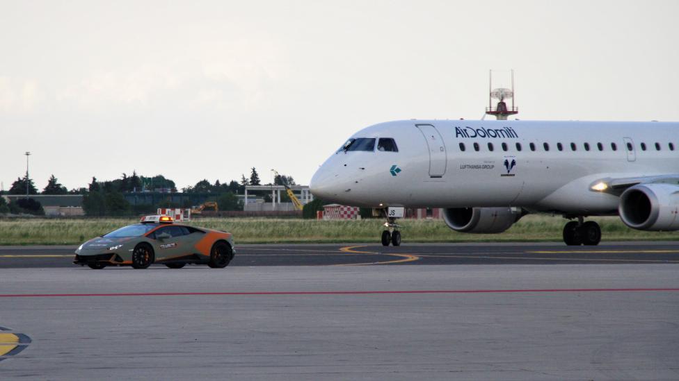 Nekateri se dobro spomnite posebnega sodelovanje letališča v Bologni z divjimi bikci iz Sant’Agate Bolognese, namreč naloga sledilnega vozila »Follow Me« pripada superšportnim Lamborghinijem. V tokratni sedmi izdaji so delo dodelili novemu Huracan Evo, ki ga glede na barvno podobno ne bo mogoče spregledati.