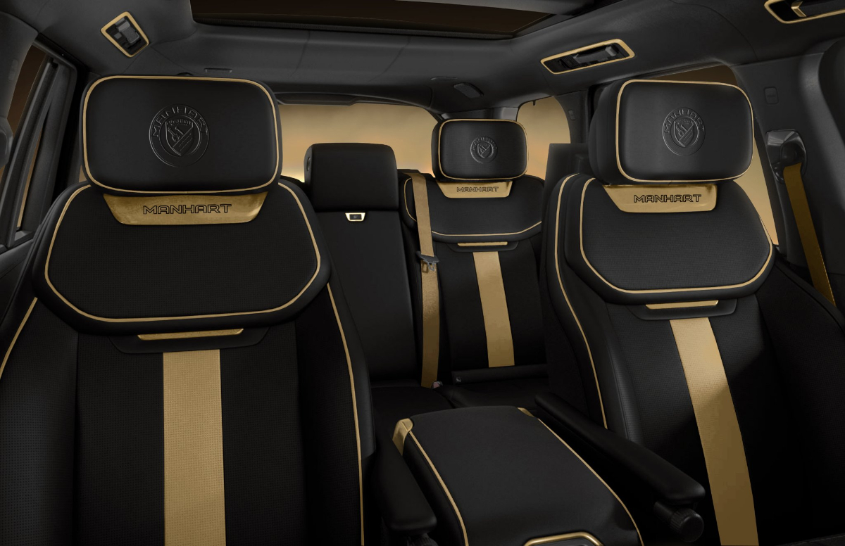 Z zlato barvo, kakopak. Nov britanski statusni simbol so odeli v značilno Manhartovo črno karoserijsko barvo in ga izdatno obogatili z zlatimi črtami ter zajetnimi kovanimi zlato obarvanimi platišči. Enakega zlatega tretmaja je bila deležna notranjost, preoblečena v presežke kakovostnega usnja ali alkantare, z mnogimi ekstravagantnimi elementi, seveda pa bodo ustregli tudi ostalim željam kupcev.