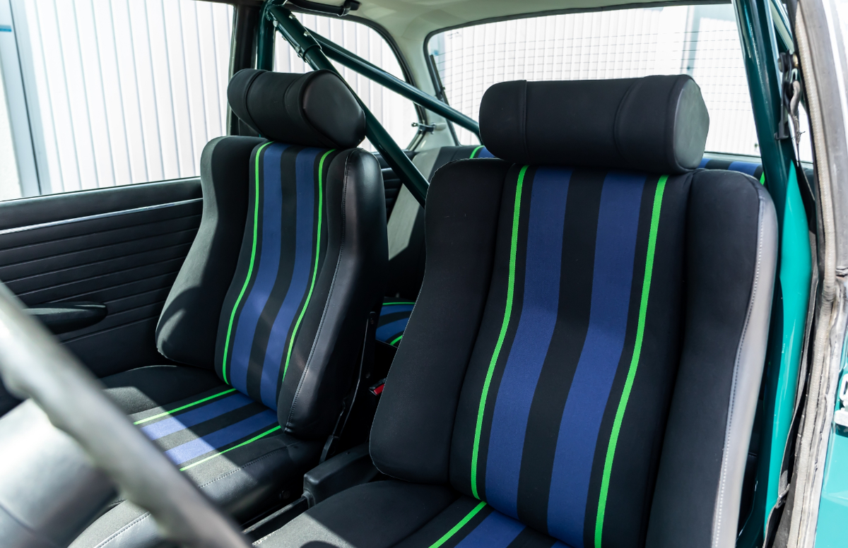 Karoserija je odeta v čudovito Agave zeleno barvo, ki jo dopolnjujejo svetlo zelene in srebrne dekorativne črte ter napisi Alpina. V notranjosti so sedeži opremljeni z ujemajočimi se črtami v zeleni in modri barvi, voznik ter sopotnika pa sedita na Manhartovih športnih sedežih Scheel, zadaj pa za dodatno varnost skrbi delna Clubsport varnostna kletka. Manhartova obnova BMW-ja 2002 tii združuje zgodovinski šarm s modernimi elementi, zaradi česar je izstopajoča klasika idealna za puristične avtomobilske navdušence.