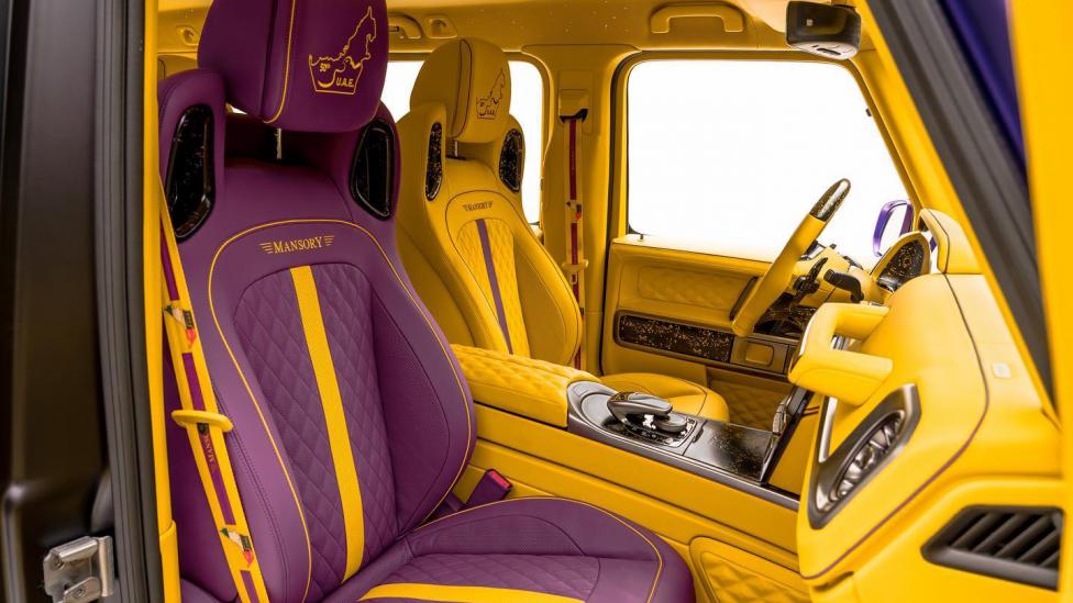 Predstavljamo vam torej divjo predelavo Mercedesa-AMG G63 z imenom P900 Special Edition UAE, s katero obeležujejo 50. obletnico obstoja Združenih Arabskih Emiratov, čeprav vijolično-rumena barvano kombinacijo notranjosti hitreje povežemo z Los Angeleško košarkarskim klubom Lakers.