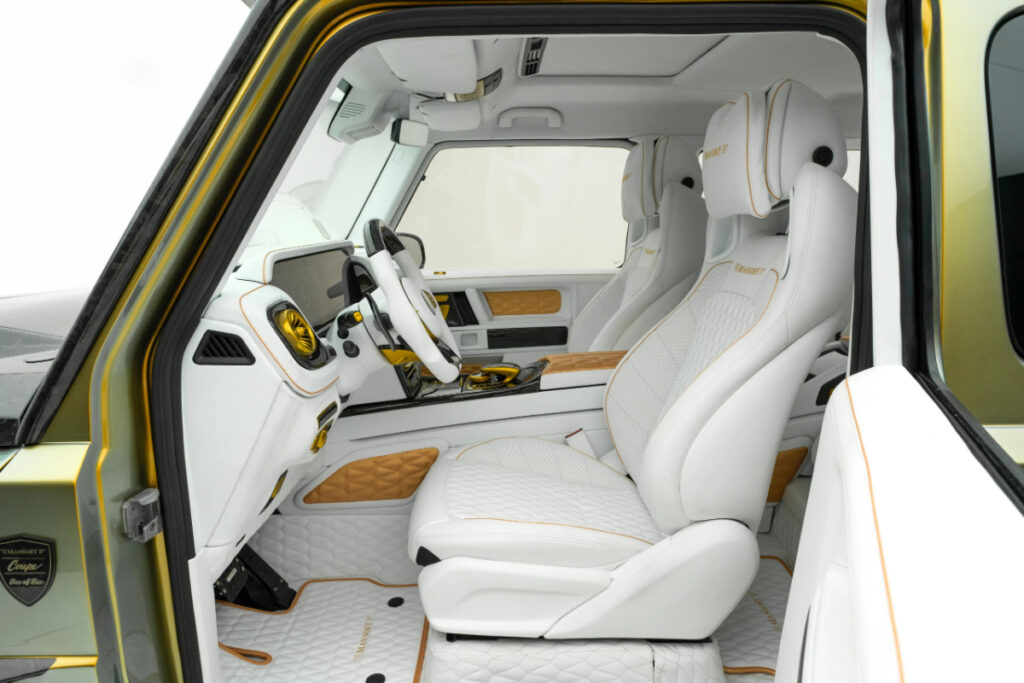 Pogled v notranjost razkriva razkošen prostor odet v najkakovostnejše belo usnje, z unikatnim prešitjem in ogromno okrasnih površin iz ogljikovih vlaken. Zadnja potnika se bosta lahko razvajala v dveh električno nastavljivih individualnih sedežih. Za češnjo na vrhu torte poskrbijo zlato obarvane tipke in obrobe instrumentov ter napisi »Mansory« všiti v naslone sedežev. Za razvoj paketa predelave so inženirji porabili več kot leto in pol, izdelati nameravajo osem primerkov, kupci pa lahko po želji izberejo tudi okrepljeno oklepno različico.