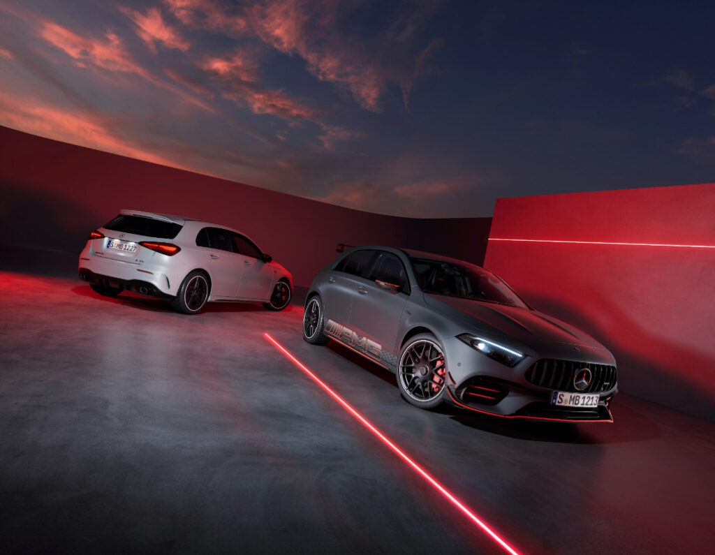 AMG A 45 ohranja naziv najmočnejše kompaktne kombilimuzine na trgu, kljub temu, da moč 2-litrskega štirivaljnika ostaja pri 421 KM in 500 Nm navora. Koti pri A 35 se ustvarjena konjenica preko samodejnega menjalnika prenaša na vsa štiri kolesa, kar pomeni pospešek do stotice v samo 3,9 sekundah in najvišjo hitrosti 270 km/h. Cen prenovljenih malih AMG-jev še niso objavili, a kot pri standardnem razredu A, lahko pričakujemo manjši dvig sedanjih.