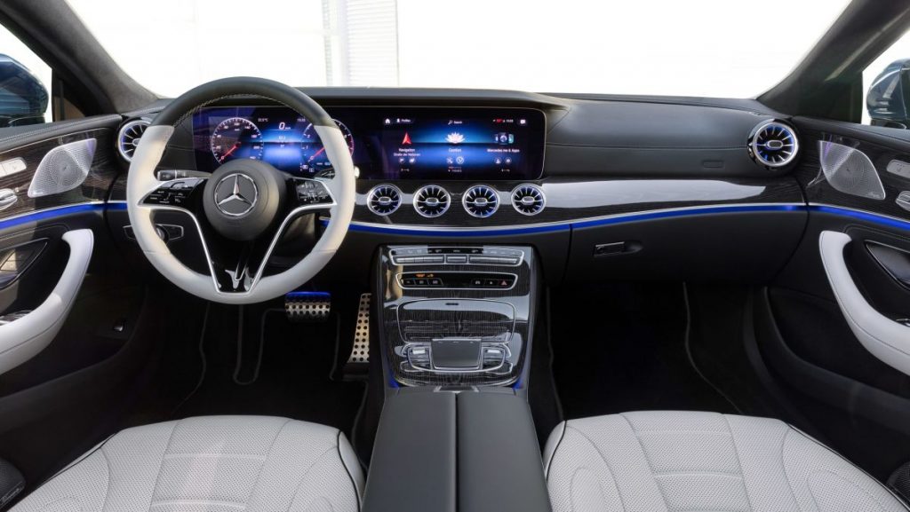 V notranjosti je najbolj vpadljiva zamenjava volana z aktualno napredno multifunkcijsko enoto, s kapacitivno tehnologijo, kar najdemo v prenovljenem razredu E in novem razredu C. Takšen volan bistveno pripomore k izboljšanem delovanju delno avtonomnih sistemov, saj vozniku ni potrebno svoje prisotnosti dokazati z rahlim premikom volana. Poleg novega volana je posodobljena izbira oblazinjenja in okrasnih elementov, z dvema svežima usnjenima oblazinjenjema v dveh odtenkih sive ali kombinaciji črne ter rjave. Bogatejši je tudi Mercedesov Designo katalog. Osnoven model prejme dva 10,25-palčna zaslona, enega namesto klasičnih merilnikov, drugi opravlja nalogo upravljanja informacijsko-zabavnih vsebin – ob stopnjevanju opreme obe enoti zrasteta na 12,3-palcev.
