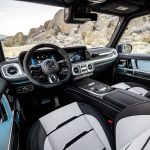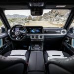 Pod motorni pokrov si je tokrat pot pričakovano utrla 48-voltna tehnologija blagega hibrida. Slednja podpira delovanje pogona v osnovnem G550 kot tudi v nabritem G63 AMG. Prvi ima nameščen trilitrski vrstni šestvaljnik, ki zmore 443 KM in 560 Nm navora, medtem ko se v nabritem G63 AMG modelu nahaja dobro znani štirilitrski twin-turbo V8 agregat s 585 KM in 850 Nm navora. Dovolj, da do stotice pospeši v vsega 4,2 sekunde. Tisti bolj delovno usmerjeni bodo morda posegli po dizelsko gnanemu G450d, katerega trilitrski prisilno polnjeni šestvaljnik zmore 367 KM in zajetnih 900 Nm navora. Še pred vstopom v dejansko leto 2025 pa se nam menda obeta električna različica EQG. Prenovljeni razred G bo še vedno izjemno zmogljiv terenec s tremi zaporami diferenciala, reduktorjem, 30- in 31-stopinjskim vstopnim oziroma izstopnim kotom ter 270 mm oddaljenosti od tal. Terenska naravnanost vozila se bo nadalje odražala tudi na multimedijskem sistemu MBUX z nekaj grafike Transparent Hood, specifične za terensko uporabo.