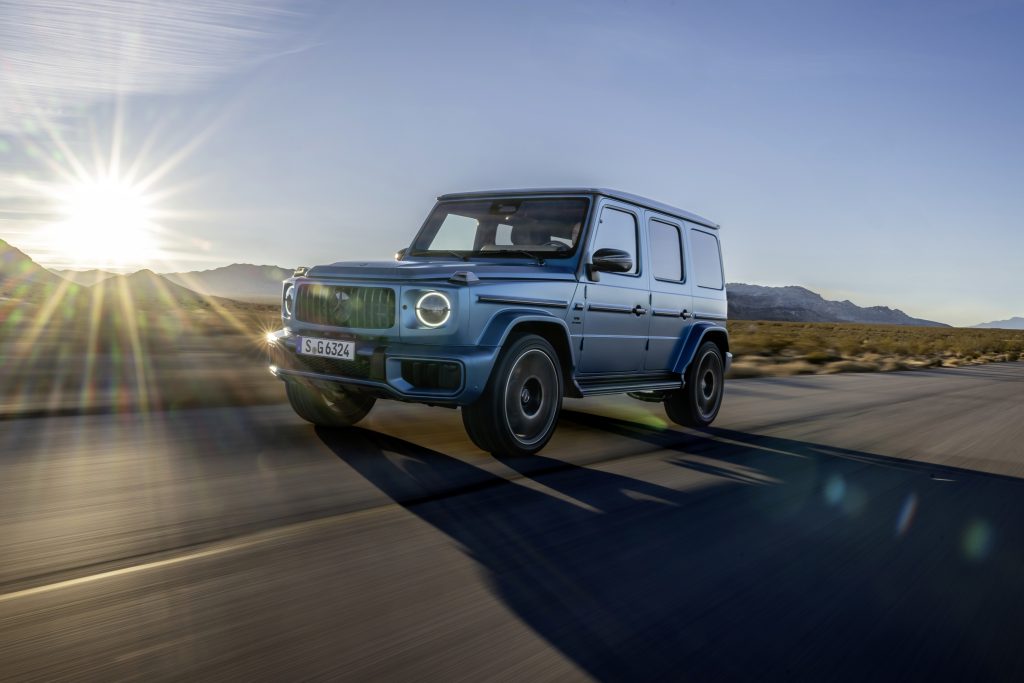 Pod motorni pokrov si je tokrat pot pričakovano utrla 48-voltna tehnologija blagega hibrida. Slednja podpira delovanje pogona v osnovnem G550 kot tudi v nabritem G63 AMG. Prvi ima nameščen trilitrski vrstni šestvaljnik, ki zmore 443 KM in 560 Nm navora, medtem ko se v nabritem G63 AMG modelu nahaja dobro znani štirilitrski twin-turbo V8 agregat s 585 KM in 850 Nm navora. Dovolj, da do stotice pospeši v vsega 4,2 sekunde. Tisti bolj delovno usmerjeni bodo morda posegli po dizelsko gnanemu G450d, katerega trilitrski prisilno polnjeni šestvaljnik zmore 367 KM in zajetnih 900 Nm navora. Še pred vstopom v dejansko leto 2025 pa se nam menda obeta električna različica EQG. Prenovljeni razred G bo še vedno izjemno zmogljiv terenec s tremi zaporami diferenciala, reduktorjem, 30- in 31-stopinjskim vstopnim oziroma izstopnim kotom ter 270 mm oddaljenosti od tal. Terenska naravnanost vozila se bo nadalje odražala tudi na multimedijskem sistemu MBUX z nekaj grafike Transparent Hood, specifične za terensko uporabo.