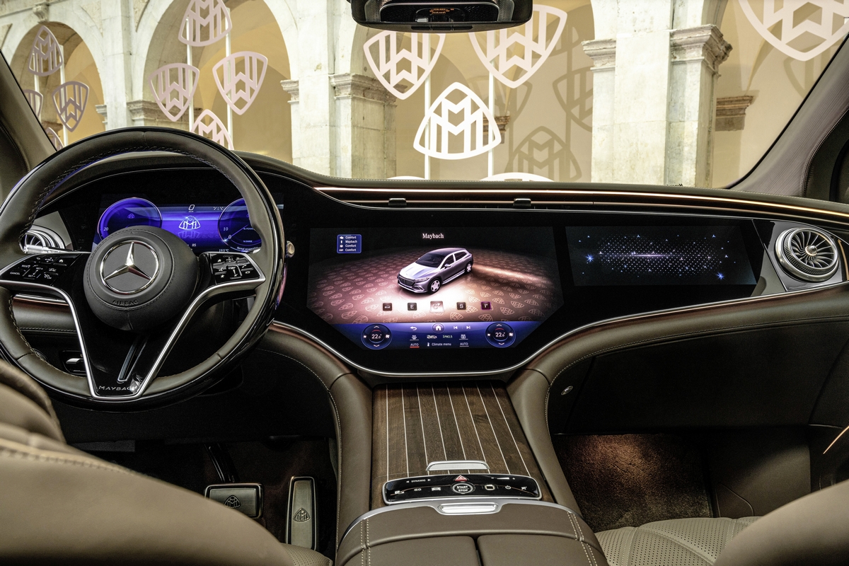 Bogato tehnološko zasedbo dopolnjuje enakovredna popestritev zunanje podobe, najdemo lahko številne ekskluzivne podrobnosti, kot so pokončni okrasni elementi na sprednji maski, stranski reži z manjšimi Maybach logotipi, dvotonsko karoserijsko barvo, številne brušene obrobe in sveže oblikovana 21- ali 22-palčna platišča s potezami značilnimi za luksuzno znamko. Presežki se nadaljujejo v notranjosti, kjer armaturno ploščo dominira serijsko nameščen Hyperscreen s tremi zasloni za enim steklenim panelom, sedeži so odeti v kakovostno Nappa usnje dveh barvnih kombinacij, zadnjo klop pa sta nadomestila dva udobna fotelja. Bodoče lastnike bosta v drugi vrsti razvajala dodatna zaslona, masaža, hladilnik za pijačo in izvrstno Burmester 4D ozvočenje. Koliko bo potrebno odšteti za ves luksuz še ni znano, a pričakujemo lahko ceno blizu 200 tisočakov.