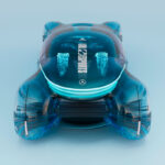 Prožna energijska polja omogočajo odmik od klasičnih osi in osredotočanje na njihovo odsotnost. Poleg tega so šipe usmerjene navznoter in poudarjajo kiparski predor osi, kar v kombinaciji s kratkim zadnjim delom še poveča energičen videz vozila. Na mestih, kjer bi pričakovali podporne strukture ali trdne materiale, zasnova preseneča z bioluminiscenčnimi delci energije in dinamičnimi strukturami. Zasnovo vozila je navdihnil svet iger, še posebej pa svet LoL Esports. Temelji na dveh edinstvenih elementih: energetskem jedru in zonskih molekulah.