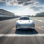 Konceptni Mercedes Vision EQXX se je sveže iz rekordne 1.008 kilometrov dolge poti med Stuttgartom in Cassisom letošnjega aprila, odpravil še na daljše potovanje brez vmesnega polnjenja. Iz domače baze je z enim polnjenjem baterije pripeljal do znamenite steze v Silverstonu in obenem nabral 1.202 kilometrov.