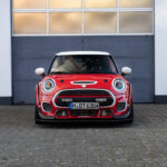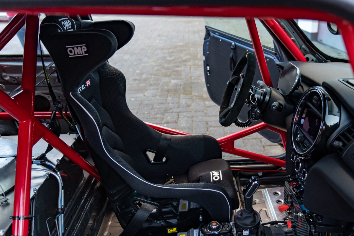 Čeprav gre za dirkaško preobrazbo, se moč na sprednji kolesni par še vedno prenaša preko serijskega osemstopenjskega samodejnega menjalnika in mehanskega diferenciala z delno zaporo. Tu se podobnosti s standardnim JCW končajo, namreč za žejo sprednjega mlinčka skrbi zajeten 100-litrski rezervoar, dno vozila je popolnoma ravno, tanjše in lažje so steklene površine, vzmetenje je dirkaško z nastavljivim blažilniki, okrepljena je šasija, športen izpuh manj duši motor, zavore pa so si sposodili pri BMW M Performance oddelku.