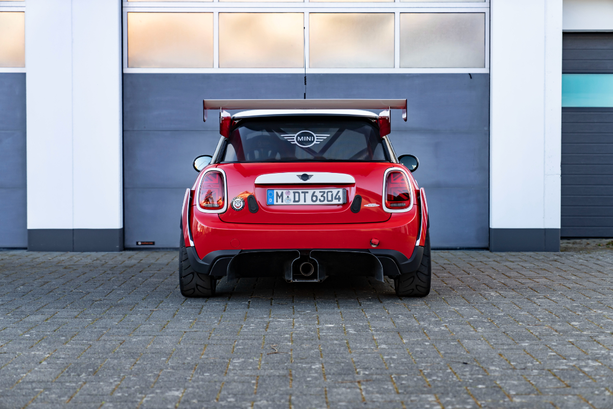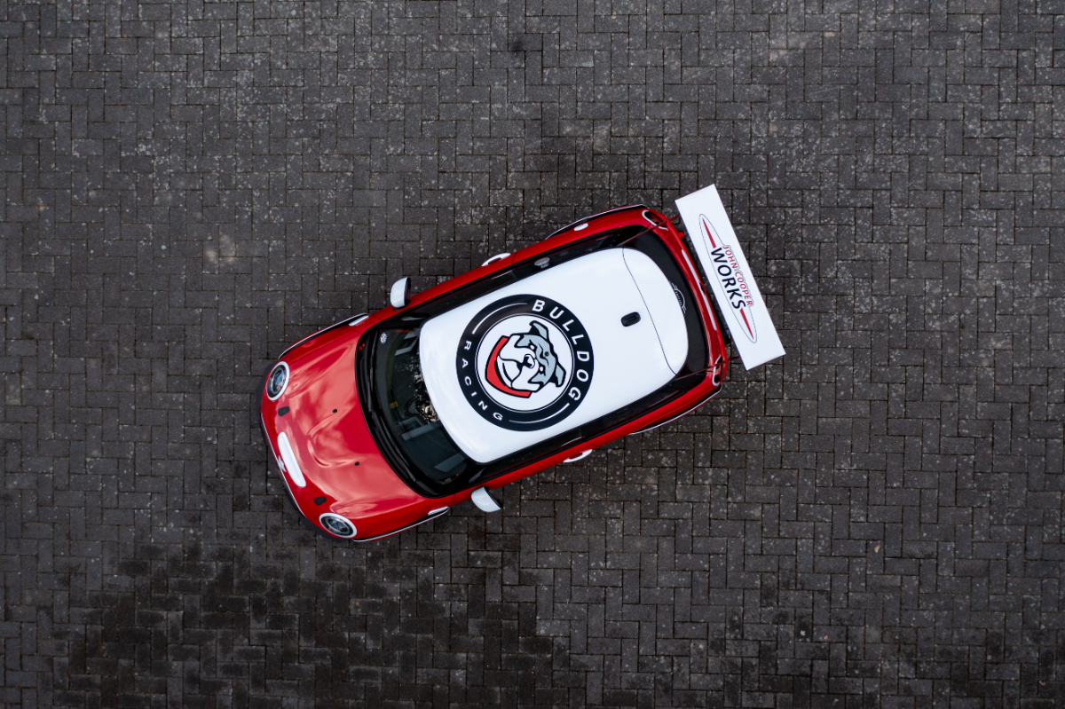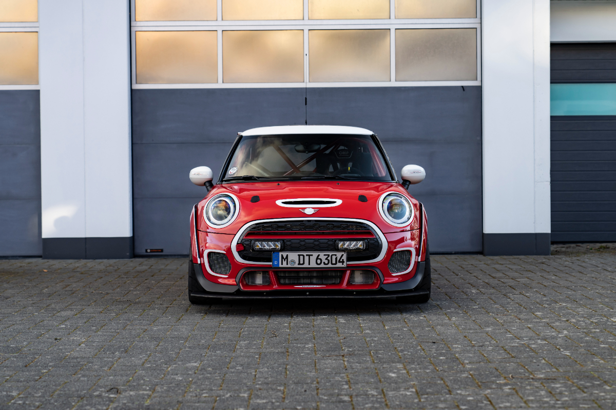 Projekt je pod okriljem ekipe Bulldog Racing, le nekaj metrov oddaljene od Nordschleifa, začel nastajati lansko leto, do zaključka so potrebovali kar sedem mesecev. Za osnovo so si izbrali trivratnega Minija JCW, katerega žene strupen 2-litrski turbinsko podprt štirivaljnik, s 306 konjskimi močmi in 450 Nm navora.