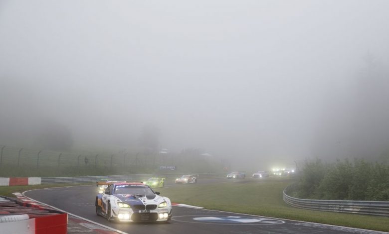 Močna megla je tradicionalno 24 urno preizkušnjo na Nürburgringu zaustavila za 14 ur in pol.