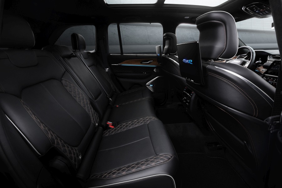 Začnimo pod motornim pokrovom, kjer bodo domovale tri pogonske opcije. Osnovo tvori 3,6-litrski Pentastar V6 agregat z 293 KM in 348 Nm navora, ki zmore vleči 2,8 tone težak priklopnik. Sledi 5,7-litrski V8 z 357 KM in 528 Nm navora, ki se kosa z 3,2-tonskim priklopnikom. Med novitete pa sodi tretja možnost, in sicer 4xe priključni hibrid, ki ga tvorita Stellantisov dvolitrski štirivaljnik in elektromotor, katerih simbioza zmore 375 KM in 637 Nm navora. Dovolj za priklopnik z maso 2,7 tone, baterijski hranilnik s kapaciteto 17 kWh pa je v povprečju dovolj za popolnoma električnih 40 kilometrov. Ste tudi vi pomislili, da vsled elektrike prehod skozi močvirja in potoke odpade? Celotna elektronika in električni pogon pri najbolj robustni opremi Trailhawk omogočata prečkanje 61 centimetrov globoke vodne ovire. Prepričani? Mi smo. V dodatno pomoč je vsekakor Quadra-Lift zračno podvozje s skoraj 29 centimetri oddaljenosti od tal, delno-samodejnim uravnavanjem podvozja in elektronsko krmiljeni diferencial z omejenim zdrsom eLSD.