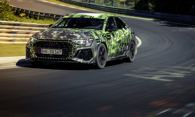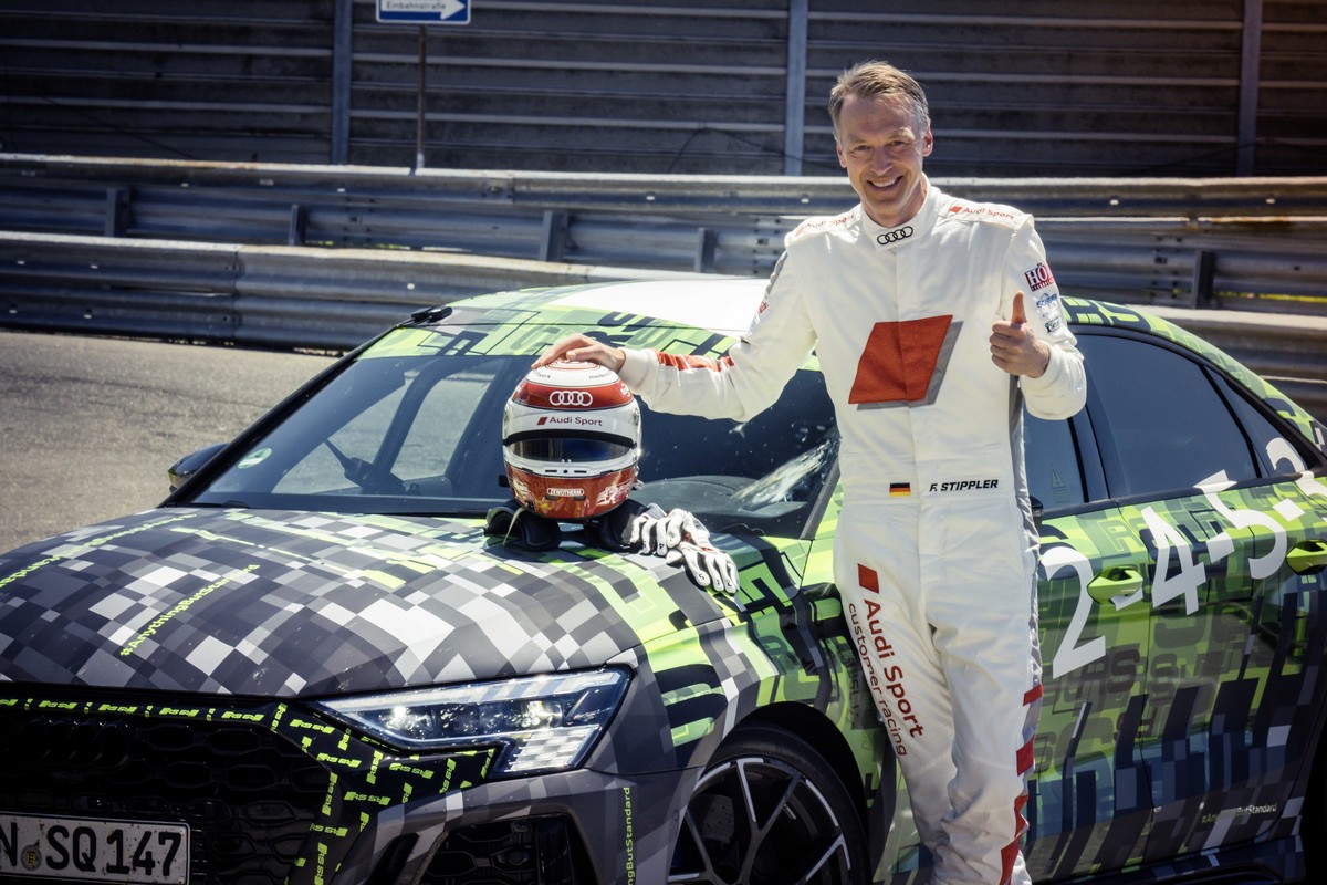 Audi je z novim limuzinskim RS3 na zeleni pentlji postavil nov rekord v segmentu kompaktnih avtomobilov, s časom 7:40.7 so za 4,6 sekunde skrajšali prejšnji rekord Renaulta Megane RS Trophy-R. Nedavno razkritega RS3 je na zahtevni stezi krotil razvojni voznik Frank Stippler, avto pa je vožnjo opravil obut v opcijske, vendar cestno-legalne Pirelli Trofeo R pnevmatike.