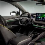 Kot pri pogonu, drastičnih sprememb ne bomo našli v notranjosti, ki ostaja zvesta pospravljeni armaturni plošči z osrednjim 13-palčnim zaslonom in manjšimi 5,3-palčnimi digitalnimi merilniki. Enyaq vRS nas bo razvajal s školjkastimi športnimi sedeži in naborom logotipov, da slučajno nebi pozabili, na njegovo posebnost. Praktično edina razlika se pozna pri rahli okrnjenosti prostora za zadnje potnike in pri volumnu prtljažnika, ki je s 585 litrov padel na 570 litrov.