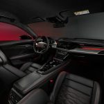 V notranjosti je serija e-tron GT pridobila nove sedeže, spremenjen volan in preurejeno digitalni okolje. V veliki meri so uporabljeni trajnostni materiali, kot sta Dinamica, ki vsebuje do 45 odstotkov recikliranega poliestra in Cascade, v polovici izdelan iz reciklirane mase. Dodatni lahko ambient kabine popestrimo z vložki iz naravne linearne antracitne breze ali mat karbonske kamuflaže pri modelih RS. Pri slednjih je možnost izbire masažne funkcije sedežev in ekskluzivni oblikovalski paket z zelenimi šivi. Digitalni svet zastopa napreden virtualni kokpit, ki zdaj v realnem času zagotavlja informacije o temperaturi baterije in največji moči polnjenja. Pri RS-ih se prikazujejo vsebine pomembne za športno vožnjo, opcijska napredna panoramska steklena streha pa uporablja tehnologijo tekočih kristalov s polimerno disperzijo za preklapljanje med prosojnim in zasenčenim stanjem.