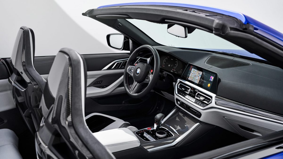Notranjost M4 kabrioleta je slična kupejevski, z izjemo dodatnih elektronsko nastavljivih športnih sedežev z Air Collar sistemom, za prijetno toplino okoli vratu pri vožnji z zloženo streho. Drugod je zgodba z dodatno opremo in tehnologijo enaka kot pri M4 Coupe.