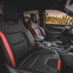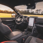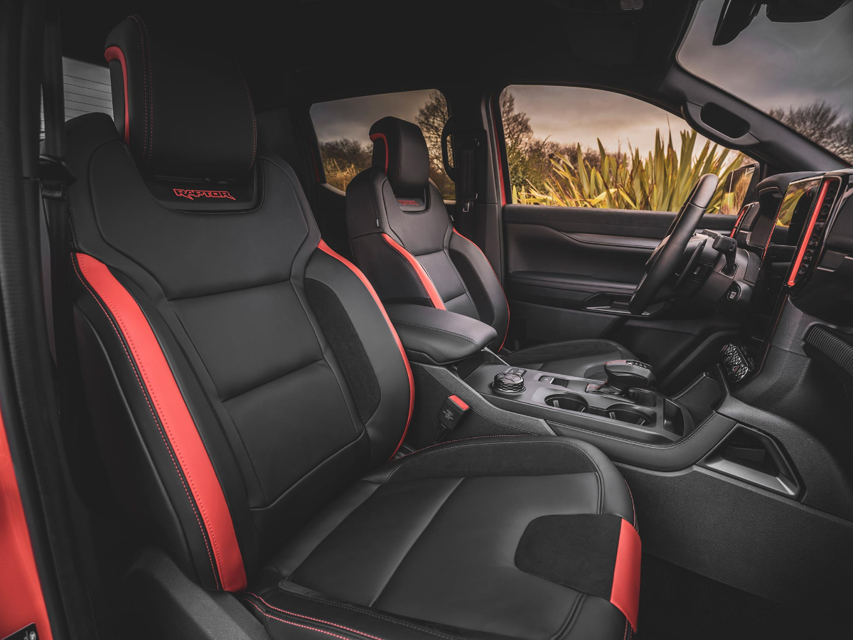 Na zunaj ga bomo brez težav ločili od povprečnih Rangerjev, saj je s svojimi dimenzijami resnično nastopaški. Glavna je širina – čez celotno sprednjo masko se razprostira napis Ford, blatniki so izdatni širši zaradi lažje namestitve zajetnih terenskih pnevmatik, ovitih okoli unikatnih Raptor 17-palčnih platišč. V notranjosti so ga opremili s školjkastima športnima sedežema, številnimi oranžnimi okrasnimi elementi, magnezijevima obvolanskima ročicama, gigantskim 12-palčnim zaslonom na sredini armaturke in12,4-palčnimi digitalnimi merilniki.