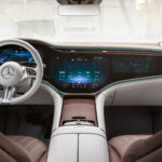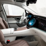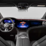 Notranjost EQE SUV sledi klasičnim smernicam premijske električne družine EQ, saj ponuja opcijski Hyperscreen zaslon, ki je s 56-palci povsem enak pri vseh modelih. Sestavljajo ga trije zasloni, ki v kombinaciji z Dolby Atmos avdio tehnologijo, med spremljanjem filmov in ko čakamo na polnjenje, ustvarijo občutek kot v kinu. Ko smo ravno pri polnjenju, Mercedes žal ni posegel po napredni 800-voltni arhitekturi, zato največja moč polnjenja znaša 170 kW, kar zadošča za poskok od 10 do 80 odstotkov kapacitete v 30 minutah, z izmeničnim tokom se lahko polni z največ 11 kW.