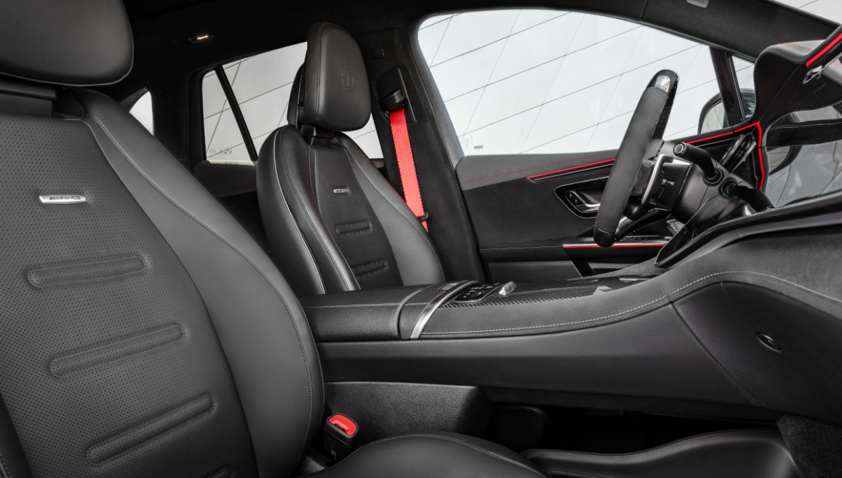 Zadnji del sestavljanke novega EQE SUV predstavljata nabrušeni različici AMG, ki se ponašata z nazivom prvega električnega SUV-ja izpod rok mojstrov iz Affalterbacha. Šibkejši od dvojce je Mercedes-AMG EQE SUV 43 4Matic, ki premore 350 kW (476) in 858 Nm navora, dovolj za doseg stotice v 4,3 sekundah ter najvišje hitrosti 210 km/h. Dodatna konjenica je doseg porinila na 488 kilometrov. Komur te številke ne bodo zadoščale, lahko poseže po EQE SUV 53 4Matic+ s 460 kW (626 KM) in 950 Nm navora, pri katerem je pospešek skrajšan na 3,5 sekunde, najvišja hitrost pa povišana na 240 km/h. Ob izbiri doplačljivega paketa AMG Dynamic Plus, je za kratek čas odklenjenih 687 KM in 1.000 Nm navora, hkrati se pohvali z izboljšanim zračnim vzmetenjem, nastavljivim blaženjem in AMG zavornim sistemom.