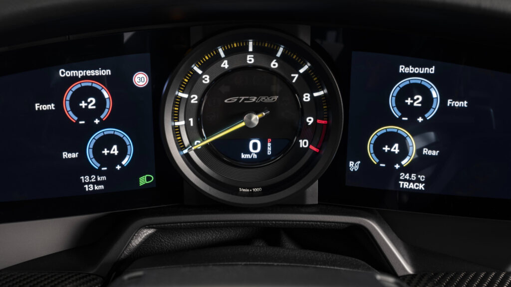 Pri doseganju nepojmljive dinamike so pri Porscheju posegali po vseh mogočih elektronskih pripomočkih, tako lahko prilagajamo odmik od tal, trdoto blažilnikov in delovanje diferenciala, pozabili niso niti na štirikolesno krmiljenje. Shujševalna kura je prinesla vrata, blatnike, sprednji pokrov in streho iz ogljikovih vlaken, ki se razteza tudi v špartansko notranjost s trakovi namesto kljuk, manjka celo informacijski sistem, sedeža pa sta dirkaška školjkasta odeta v usnje ter alkantaro, kot preostanek notranjosti.