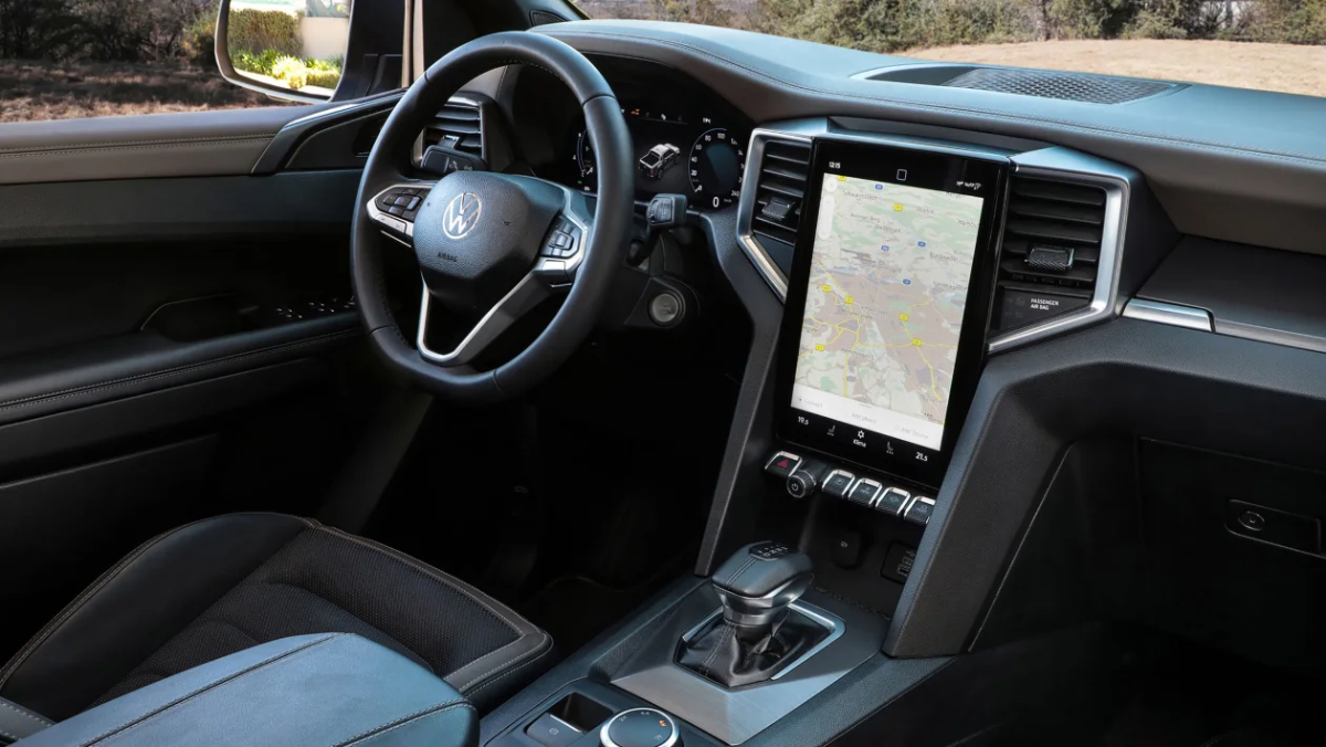Notranjost je povem modernizirana z 8-palčnimi virtualnimi digitalnimi merilniki in 12-palčnim pokončnim osrednjim zaslonom na dotik, katerega si deli z Rangerjem, ohranjene so prav tako klavirske tipke pod zaslonom in stikala za odpiranje oken. Vse ostalo je delo Volkswagnovih oblikovalcev, ki so želeli vpeljati več premijskega občutka. Multifunkcijski volan ohranja fizične tipke in je podobne zasnove kot pri večini osebnih modelov, celoten sistem bo gnal domač operacijski sistem, vključno z nastavljanjem klimatske naprave, kar žal poteka preko zaslona.