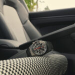 Ob vstopu v notranjost nas bo navdušilo črno usnjeno oblazinjenje s kontrastnim retro Sport-Tex tekstilom na sredini sedežev in unikatna urna na vrhu armaturne plošče (del paketa Sport Chrono), s sivo številčnico ter rdečim kazalcem.