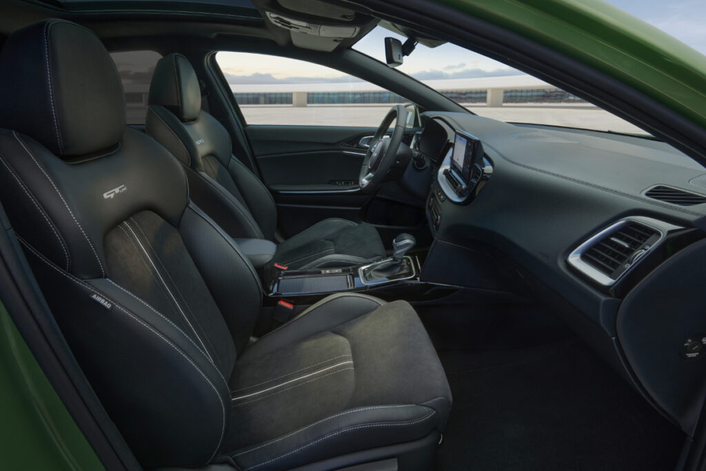 Novostim ni ubežala notranjost, kjer sicer ostaja ločena razporeditev zaslonov. Pred voznikom se razprostira 12,3-palčni Supervision digitalni kokpit z nastavljivim prikazom, osrednji del armaturne plošče zastopa 10,25-palčni zaslon na dotik, seveda pri višjih stopnjah opreme, standarden meri osem palcev. Sistem sedaj podpira brezžično povezavo s storitvama Apple CarPlay in Android Auto, Kia Connect nenehno spremlja stanje na cestah in podaja informacije o parkirnih možnostih na koncu destinacije. Preostanek kabine ostaja skoraj enak kot prej, sicer odet v materiale boljše kakovosti – kupci lahko izberejo oblazinjenje v blagu, semišu, umetnem ali pravem usnju. Nova oprema GT-Line doda več dinamičnega vtisa s športnimi sedežei, športnim volanom, črnim stropom in perforirano prestavno ročico.