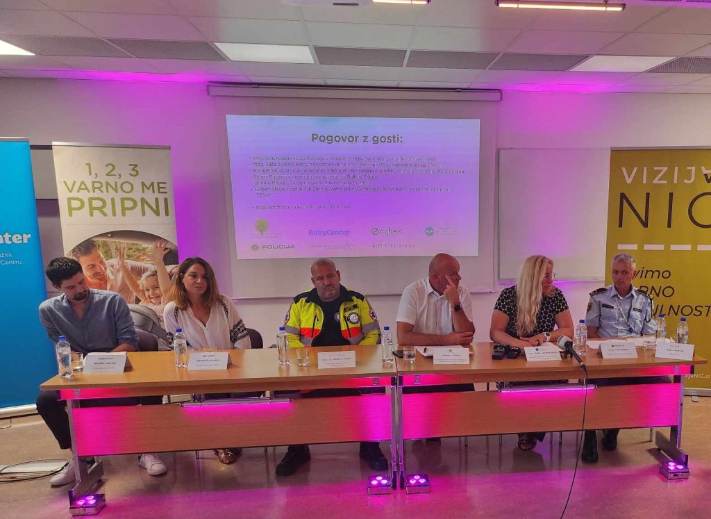 V prostorih URI Soča je potekala okrogla miza z naslovom “1, 2, 3, varno me pripni!”, ki jo je organiziral Zavod Varna pot v sodelovanju z Baby Centrom. Dogodek so z aktivno udeležbo podprli še mag. Ivan Kapun, vodja Sektorja prometne policije Generalne policijske uprave (GPU), mag. Saša Jevšnik Kafol, namestnica direktorice Agencije RS za varnost prometa (AVP), Robert Sabol, dipl.zn.reševalec, Inštruktor ITLS pediatric & adult, Reševalna postaja UKC Ljubljana, Selma Busovača, predstavnica Cybexa in Branko Marinič, predstavnik Baby Centra.