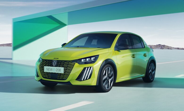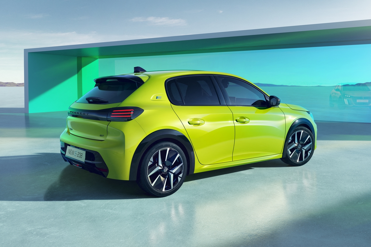 Osveženi Peugeot E-208, ki svojo prodajno pot začenja novembra letos, ko na voljo v treh različicah – Allure, Active in GT. Za pogon bo skrbelo šest različnih sklopov, vključno z novim električnim z močnejšim elektromotorjem s 115 kW (156 KM) in večjo baterijo s kapaciteto 51 kWh, kar omogoča do 400 kilometrov dosega. Polni se lahko z enofaznim priklopom z močjo 7,4 kW ali opcijskim trifaznim polnilnikom z močjo 11 kW in hitrim 100-kilovatnim enosmernim tokom, ki baterijo do 80 odstotkov oskrbi v 25 minutah. Dva nova motorja sta tudi 48-voltna blago-hibridno podprta Hybrid 100 in Hybrid 136, z ujemajočo količino moči, pri katerih kompakten elektromotor skrbi za dopolnjevanje navora ter zmanjšanje porabe. Na dnu palete ostajata klasična trivaljna bencinska motorja PureTech 75 in PureTech 100.