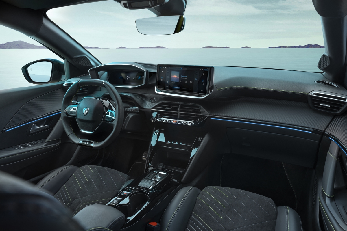 Oblikovne posodobitve vključujejo nov sprednji svetlobni znak s tremi dolgimi navpičnimi svetlobnimi kremplji, vgrajenimi v odbijač, postavno masko, preoblikovano zadnjo osvetlitev z vodoravnimi elementi, izrazite nove barve, kot sta Agueda Yellow in Selenium Grey ter nove oblike platišč. Novi 208 vključuje tudi logotip posodobljene identitete francoske znamke, vključno z novimi napisi v barvi Basalt Grey. V notranjosti najdemo elegantno tkanino sedežev, prenovljeno digitalno instrumentno ploščo s 3D zaslonom v različici GT in velikim 10-palčnim osrednjim zaslonom na dotik v vseh modelih. Kompaktni volan sistema Peugeot i-Cockpit zagotavlja okretnost in natančnost, različica GT pa ponuja dinamično ambientalno osvetlitev v osmih različnih barvah.