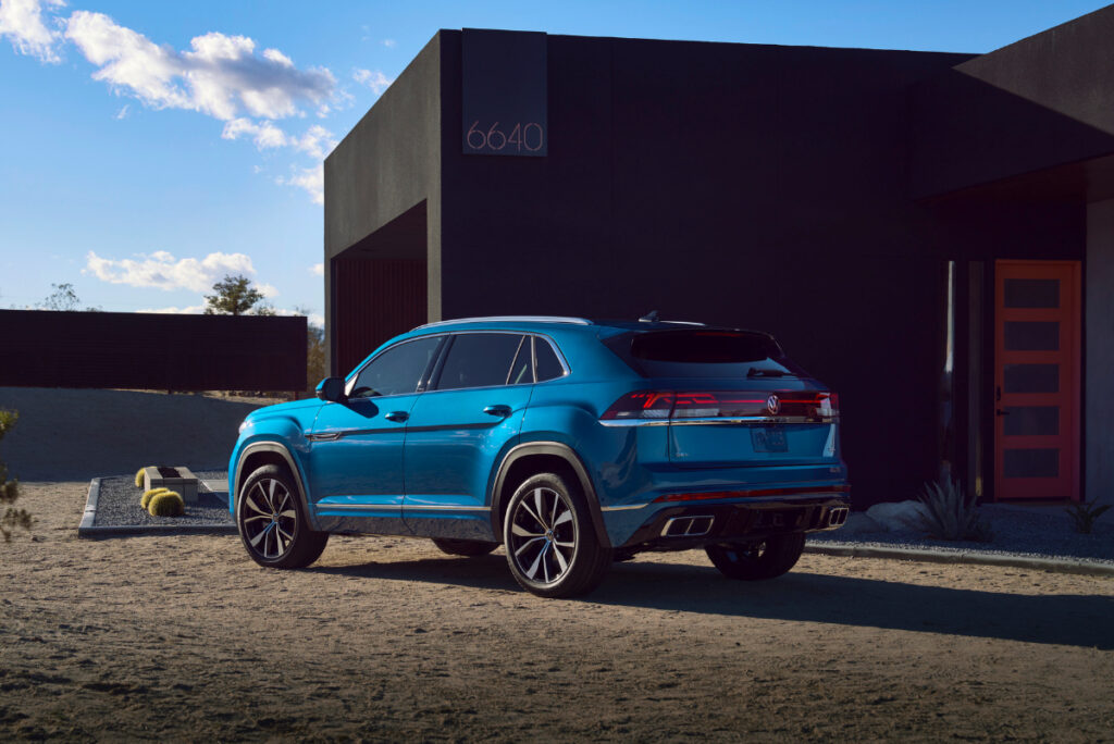 Osvežitev zunanjosti prinaša novo obliko sprednjega dela in večje razlikovanje med dvema različicama Atlasa. Prepoznali ju bomo po novi široki maski s kromiranimimi obrobami, ki se zliva s prilagodljivima LED žarometoma. Pri višjih stopnjah opreme žarometa obkroža dnevni svetilni trak, vzdolžno raztezajoč čez celotno masko. Sprednji odbijač ima tudi rahlo preurejene dovode zraka, Atlas Cross Sport pa ima okrasne površine v bleščeči črnini. Na zadku so obema modeloma namenili večji spojler, ki vizualno podaljša strešno linijo vozil in podarja športno noto. Zadek nadaljuje svetlobni podpis sprednjega dela z vzdolžno osvetlitvijo združeno z Volkswagnovim logotipom. Cross Sport se pohvali še z agresivnejšim zadnji difuzor kot prejšnja generacija. Nova Atlasa sedita na svežih platiščih dimenzij od 18- do 21-palcev.