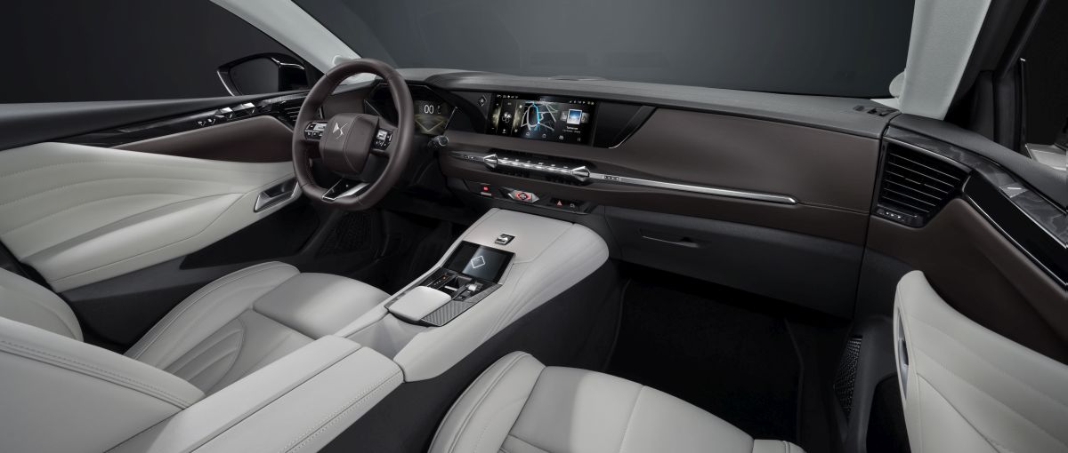 Kabina DS 4 je doživela digitalno revolucijo, fizičnih gumbov je le peščica, zasloni so kar trije. Za volanom se skrivajo digitalizirani merilniki, na sredini armaturne plošče je 10-palčni informacijski zaslon, katerega upravljamo s 5-palčno enoto na sredinski konzoli. Poimenovali so jo DS Smart Touch. Predstavili so še nov head-up prikazovalnik, z naprednim sistemom razširjene resničnosti, ki navigacijska navodila projicira na cesto štiri metre naprej, namesto na vetrobransko steklo. Elegantna notranjost bo lahko po željah strank odeta v kakovostno usnje ali alkantaro, z dekorativnimi elementi iz karbonskih vlaken ali naravnega lesa.