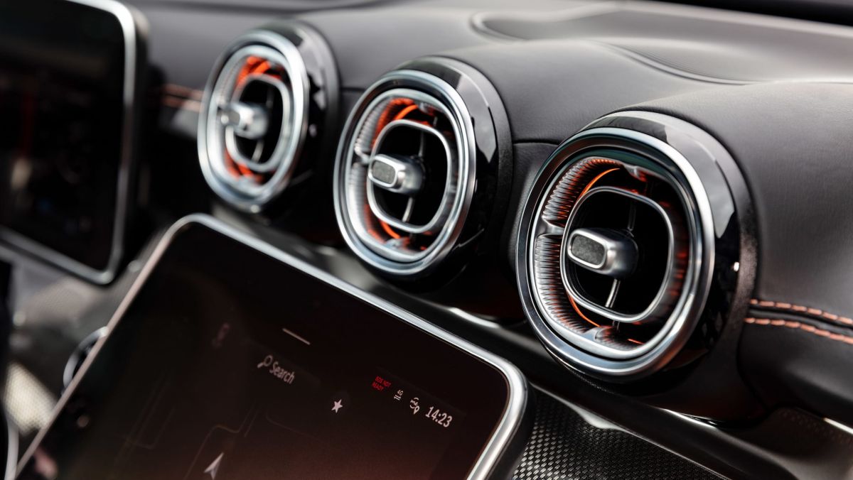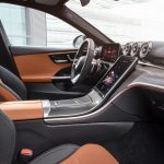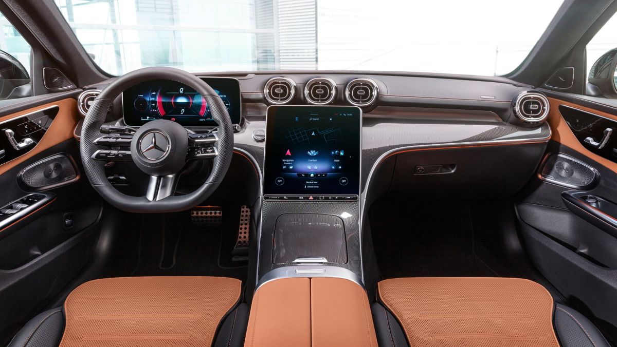 Osrednja in morda najbolj kontroverzna točka novega C je zagotovo notranjost. Ponovno se oblikovno naslanja na večjega razred S, kjer v slogu novih smernic najdemo pokončen sredinski zaslon, ločene digitalne merilnike, novo oblikovanje zračnikov in navsezadnje, pomanjkanje fizičnih gumbov. Z najnovejšim MBUX informacijsko-zabavnim vmesnikom upravljamo preko osnovnih 10,25- in 9,5-palčnih zaslonov ali večjih 12,3- in 11,9-palčnih enot. Moderno kabino zaokrožuje izbira različnih oblazinjenj in dodatkov ter ambientalna osvetlitev.
