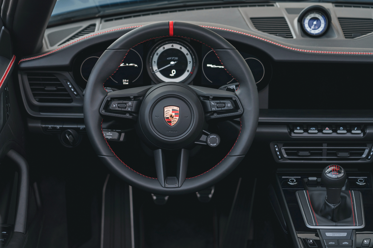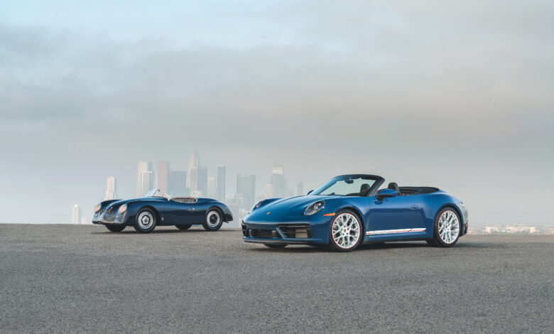 Modro, belo in rdeče okrašeni 911 GTS se poklanja 70. obletnici 356 America Roadster.