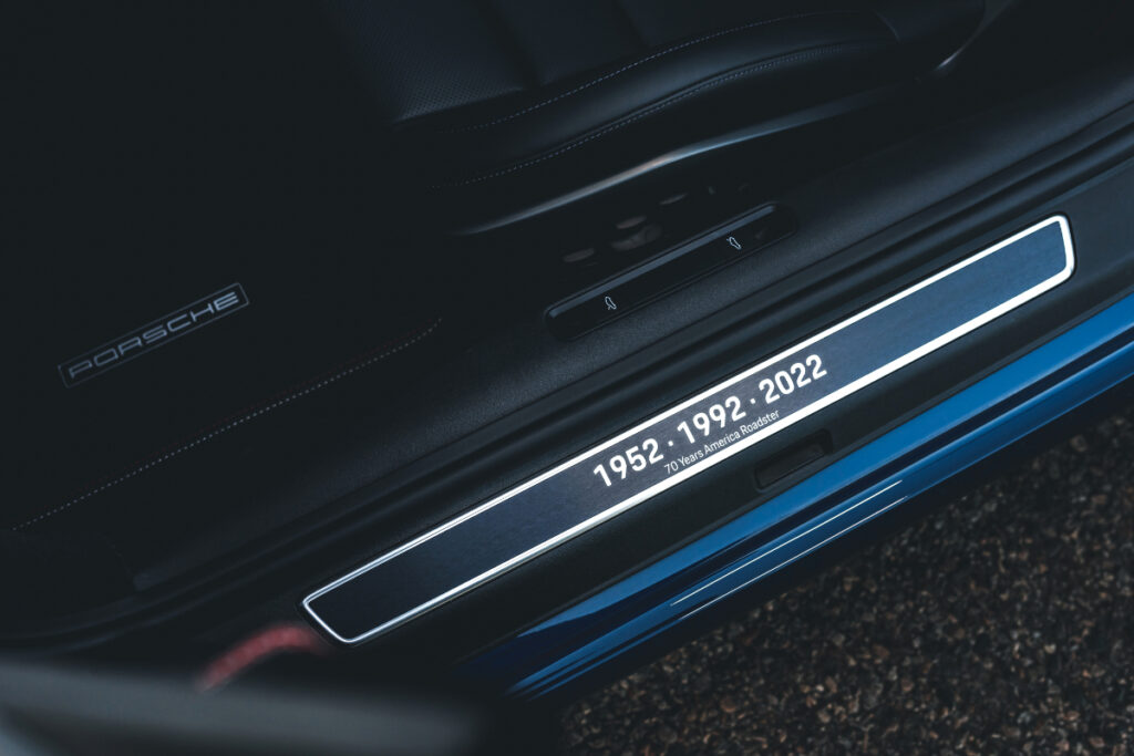 Največja posebnost America edition tiči v samem videzu, za katerega so zaslužni mojstri pri oddelku Porsche Exclusive Manufaktur. Karoserija z brezčasnimi linijami je odeta v azurno modro barvo v slogu originalnega America Roadster, bela RS Spyder Design platišča krasijo rdeče obarvane obrobe, enaka barvna kombinacija so izbrali tudi za stanske okrasne črte. Patriotska tematika se nadaljuje v razkošni notranjosti, oblečeni v črno usnje z barvitimi šivi.