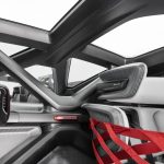 V kabini v centru kletke najdemo samcat školjkast sedež s 3D tiskanim in izvezenim penastim oblazinjenjem, medtem ko špartansko armaturko zastopata dva zaslona – digitalizirani merilniki in dodatne zaslonček na samem volanu, okrožen z raznimi stikali. Za razliko od številnih avtomobilov takšnega kova, ki nastanejo s predelavo serijskega modela, je Mission R od samega začetka nastajal skupaj s produkcijsko obliko. »Brez dvoma lahko veliko oblikovnih elementov in metod izdelave prenesemo na prihajajoče serijske avtomobila,« je dejal Ingo Bauer-Scheinhütte, odgovorni manager oddelka Advanced Design. »Enaka ekipa sočasno razvija oba modela.«