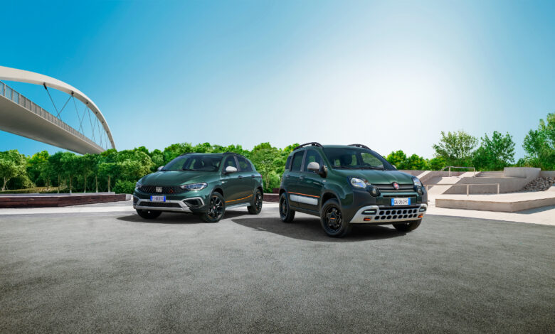 Oba popularna Fiatova modela bosta v izvedenki Garmin odeta v novo karoserijsko barvo Foresta Green, s kontrastnimi oranžnimi podrobnostmi. Pri obeh so za osnovo uporabili terensko nastavljeno različico Cross, s postavnimi črnimi plastičnimi obrobami in dodatkom matirano sive barve na sprednji zaščiti odbijača, zunanjih ogledalih ter bočnih zaščitah.