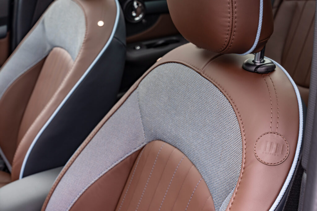 Podobna tematika se nadaljuje v notranjosti, kjer najdemo pragova z napisom Final Edition in udobne športne sedeže iz zbirke Mini Yours odete v kakovostno Nappa usnje, s kontrastno všitimi emblemi. Na sopotnikovi strani temne armaturne plošče se nahaja značka z vnovičnim napisom »1 od 1969«, sredino pa zastopa standarden 8,8-palčni informacijski zaslon na dotik z najnovejšim info-zabavnim sistemom in sodobno povezljivostjo.