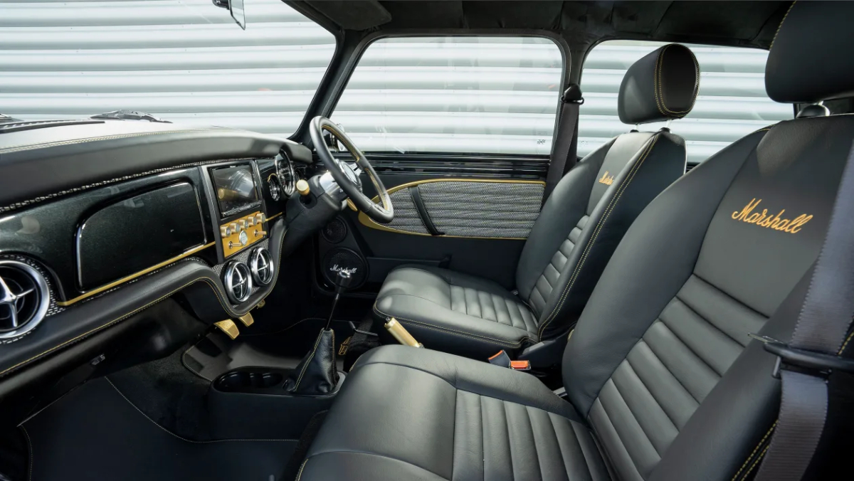 Navdahnjenost s strani Marshalla je opazno nemudoma, saj so prerojenemu Miniju namenili zlato obarvano sprednjo masko, ki imitira njihove ikonične retro ojačevalce. Predstavitveni primerek je odet v kovinsko sivo barvo, a na izbiro bodo tudi drugi odtenki, ekskluzivni za Marshall Editon. Zlata tematika se nadaljuje v notranjosti, kjer so enako obarvani elementi armaturne plošče, stopalke, šivi in obrobe usnjenih sedežev. Za dodatno popestritev so v naslon sedežev všili logotip Marshalla. Pričakovano bo posebni Mini deležen tudi avdio nadgradnje z novim zvočnim sistemom.