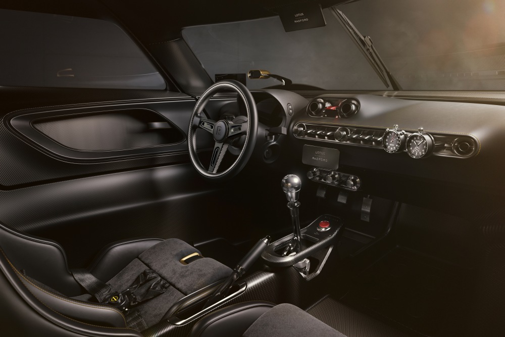 Osrednjo armaturno ploščo, ki je preplet izvirnika in sodobnih rešitev, bosta namreč v vsakem primeru krasili analogni ura in štoparica angleške prestižne znamke Bremont, in prav v njihovem novem centru tehnologije in razvoja zahodno od Londona so razgrnili nedrja obujenega Lotusa. Neukim naj predložimo dejstvo, da podjetje Bremont, ki slovi po luksuznih urah in kronometrih z letalsko tematiko, letno ustvari promet v velikosti nekaj deset milijonov evrov ob približno 10.000 prodanih primerkih. Gre torej za sodelovanje dveh izrazito ozko usmerjenih podjetij, ki svoje kupce iščeta med butično in ekonomsko več kot odlično podprto klientelo.