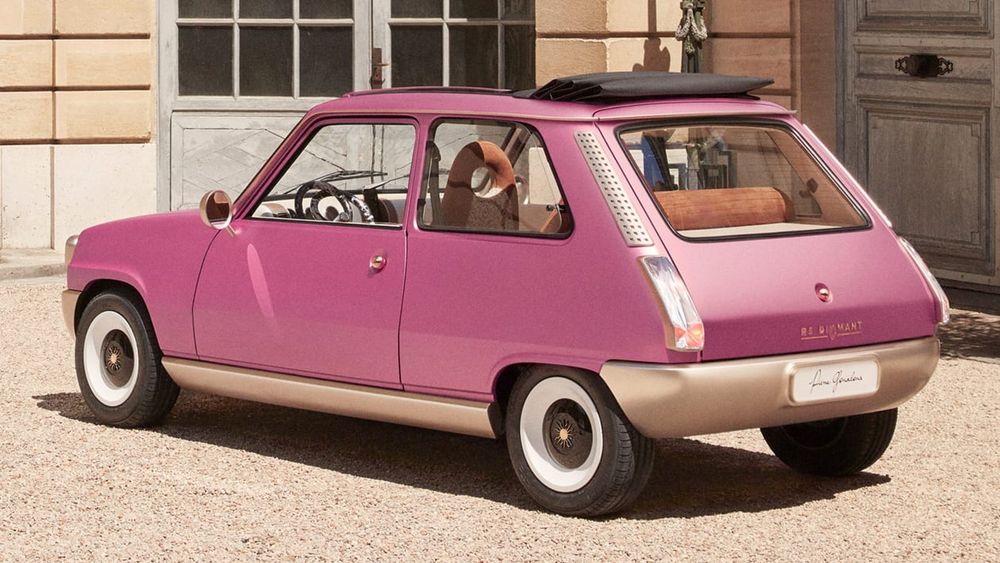 Dotična »petka« je plod sodelovanja Renaulta in francoskega oblikovalca Pierra Gonalonsa, ki je kljub izrazito estetiki podrejen avtomobil še vedno ohranil značilno prepoznaven. In to rožnati karoserijski barvi, armaturni plošči iz konjske dlake in volanskemu obroču iz marmorja navkljub. Tako je, prav ste prebrali – vse to je vključeno v to oblikovno kreacijo na štirih kolesih, ki ima še vedno škatlasto obliko, delno prekrita zadnja kolesa in po novem tudi električni pogon.