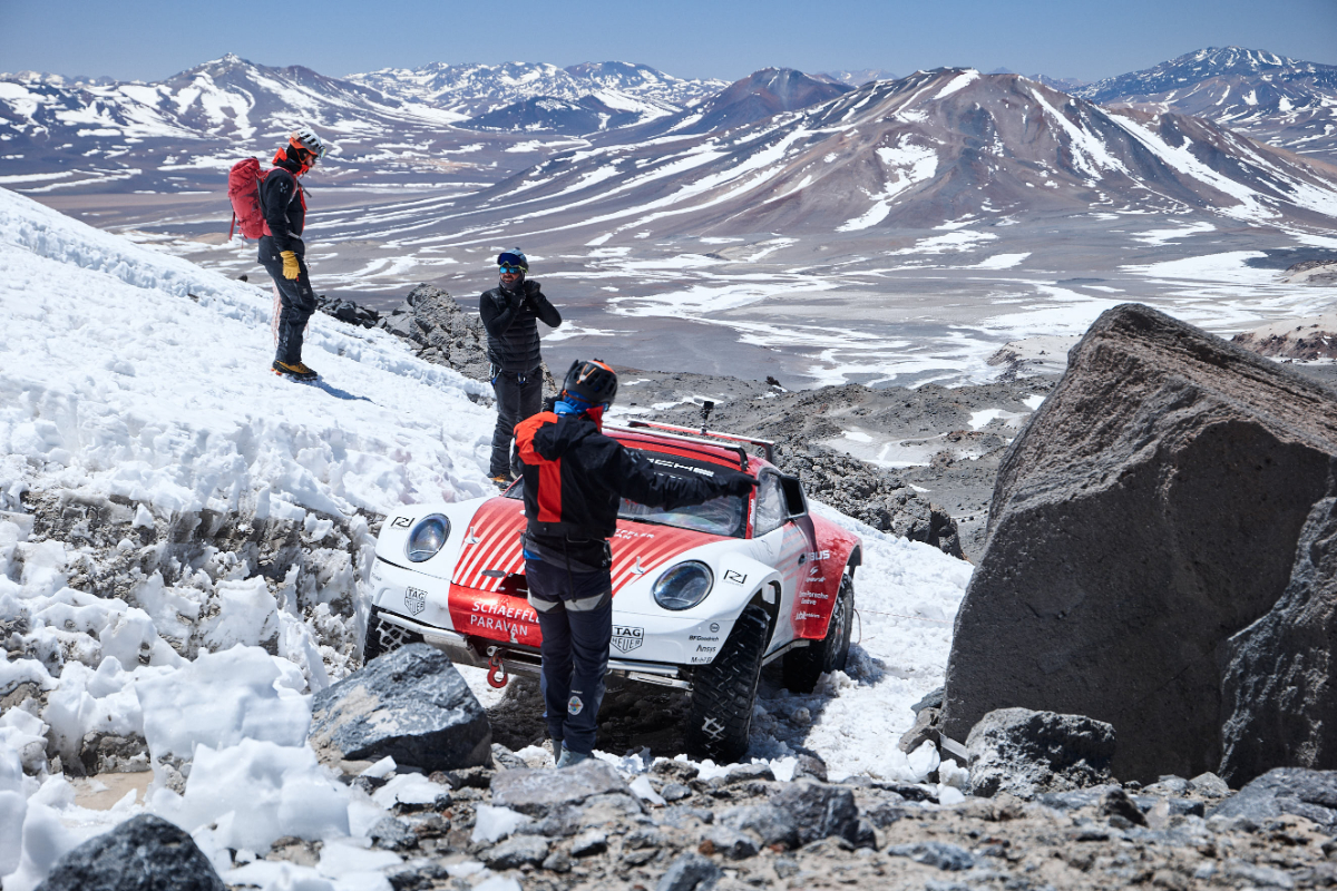 Po zaključku del je sledil še zadnji podvig. Odprava na strmice Ojos del Salado v Čilu, ali bolj rečeno na najvišji vulkan sveta. Ker se temperature na tej višini spustijo tudi pod -30 stopinj Celzija, sta Porscheja 911 zaključila malo preko meje 6.000 metrov nadmorske višine, kar je manj kot 900 metrov pod vrhom gore. Vsekakor zavidanja vreden dosežek, še posebej ob upoštevanju, da gre za avtomobil čisto drugačnega kova in da pri takšni višini primanjkuje kisika nujnega za delovanje motorjev z notranjim izgorevanjem.