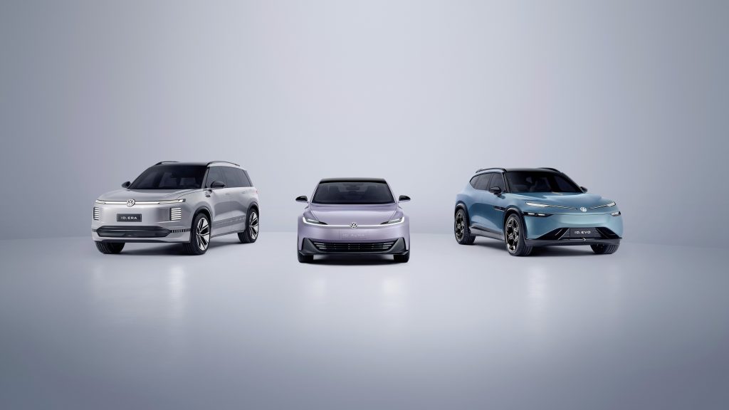 Študijski modeli ID.Era, ID.Evo in ID.Aura predstavljajo novo generacijo inteligentnih in popolnoma povezanih električnih vozil, ki so prilagojena željam kitajskih kupcev. Razvili so jih skupaj s svojimi tamkajšnjimi partnerji, s seboj pa so pripeljali precej novosti. V ospredju je ID.Era, družinski SUV s tremi sedežnimi vrstami, ki je oblikovno podoben Tayronu, s seboj pa je pripeljal prvi pogon s podaljšanim dometom. Električnemu pogonu je namreč v pomoč manjši bencinski agregat, ki skupno avtonomijo vozila dvigne vse do 1.000 kilometrov. Sledi prav tako SUV po imenu ID.Evo, ki je nekako bolj konvencionalno zapakiran Cupra Tavascan, le da ima pod pločevino nameščen 800-voltno električno arhitekturo in je pričakovano digitalno povsem pečiščen. Ljubiteljem limuzin pa bo zagotovo bolj po godu ID.Aura, nekakšna električna naslednica nam bolj domače VW Bore, s katero ciljajo na manj zahtevne kupce, ki iščejo dostopen električni avtomobil.
