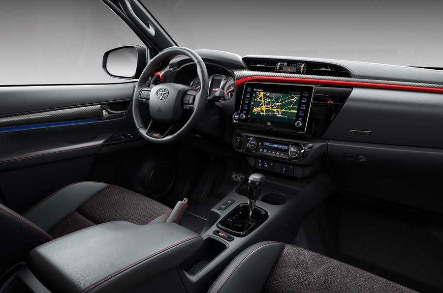 V slogu uspešne četrte generacije Hiluxa iz zgodnjih osemdesetih let prejšnjega stoletja, so vsi GR Sport modeli namesto s klasičnim logotipom, na sprednji maski okrašeni z velikim napisom TOYOTA. Toyotin mlačni »Raptor« sedi na novih 17-palčnih platiščih, zunanjost je odeta v črnino, kot tudi vsi ostali elementi, od maske do stranskih stopničk. V notranjosti športne smernice nadaljujejo športni sedeži, tepihi in zagonski gumb z GR logotipom, dodatno so mu namenili še aluminijaste stopalke in obvolanski prestavni ročici.