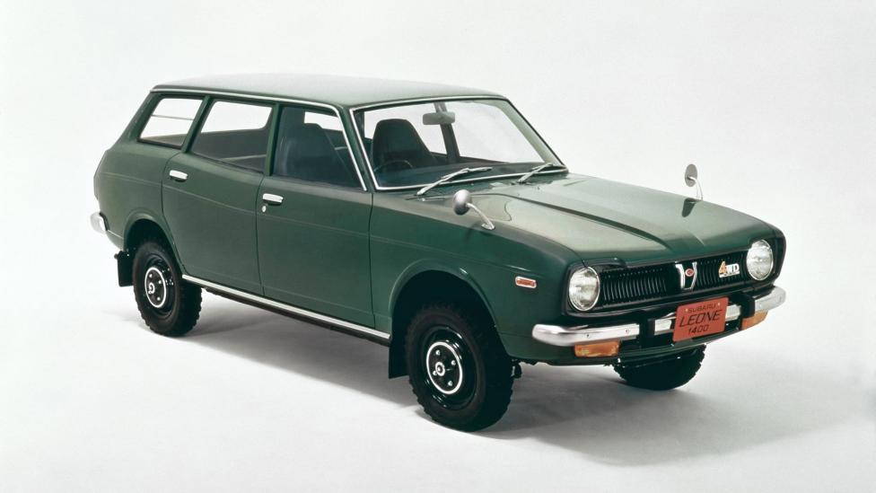 Le-ta je bil Leone 4WD karavan letnik 1972, kakršnega vidimo na priloženih fotografijah. Z maksimalno močjo 80 KM in 103 Nm navora je bil precej daleč od Subarujevih relijaških legend, katere so nas navduševale od devetdesetih let dalje. Gre za prikupen praktičen avtomobil, oblikovan v slogu sedemdesetih, vse od zaobljenih linij, do vzvratnih ogledal na sprednjih blatnikih, seveda s precej povzdignjenim podvozjem in obveznimi terenskimi pnevmatikami. Ob prihodu se je zavihtel na mesto prvega japonskega masovno proizvedenega avtomobila s štirikolesnim pogonom.